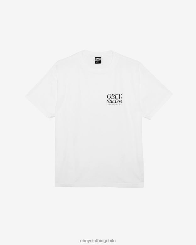 ropa 40VX376 hombres camiseta de peso pesado con icono de estudios OBEY blanco