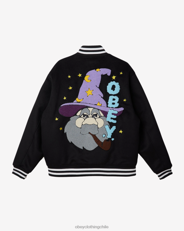 ropa 40VX813 hombres chaqueta universitaria mago OBEY negro